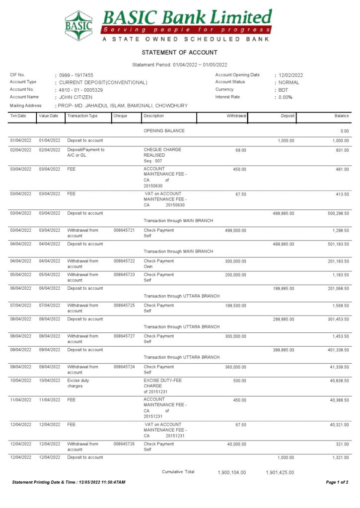 Bank Statement