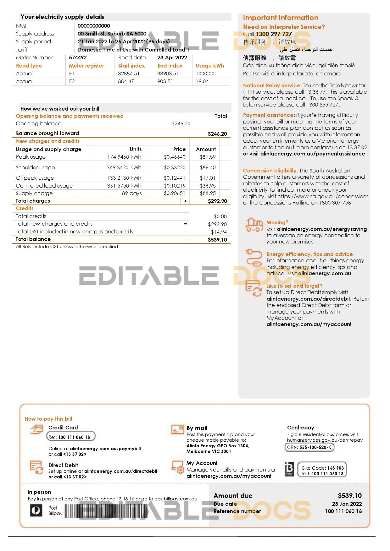 Australia Alinta Energy gas utility bill Word template. Fully editable Word template. High-quality template. Easy to customize, Layer based, fonts included. you can edit this template and put any name, address, license number, Id number, birth date, height, weight, expiration date, etc. This Word template is easy to Editing. To modify this Word template file you will need a Word editing software such as Microsoft Word. Be alert! Never use low-quality templates, your account may get suspended forever.