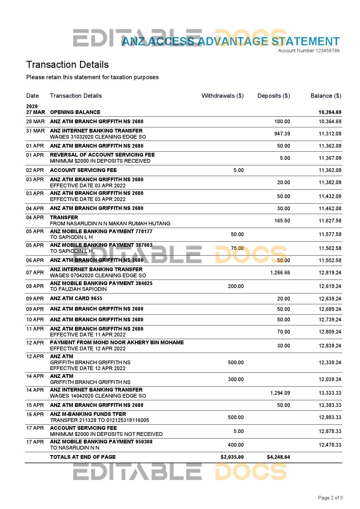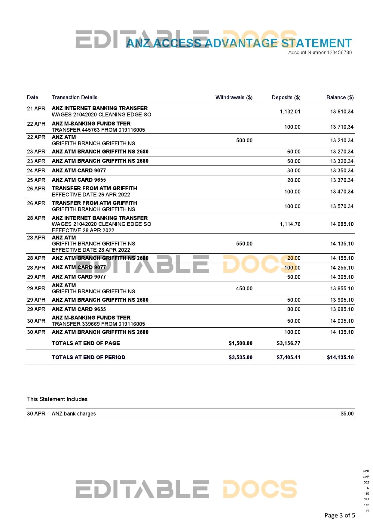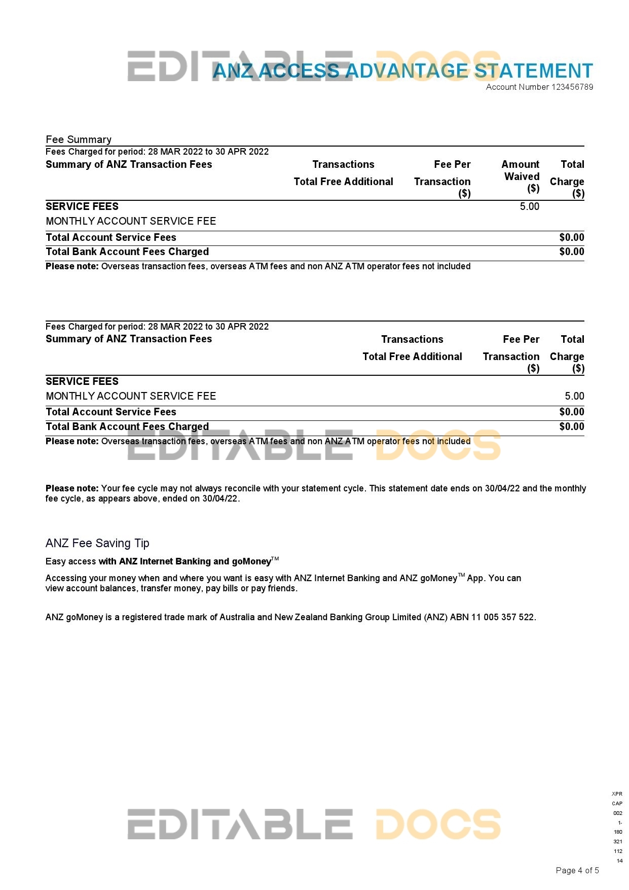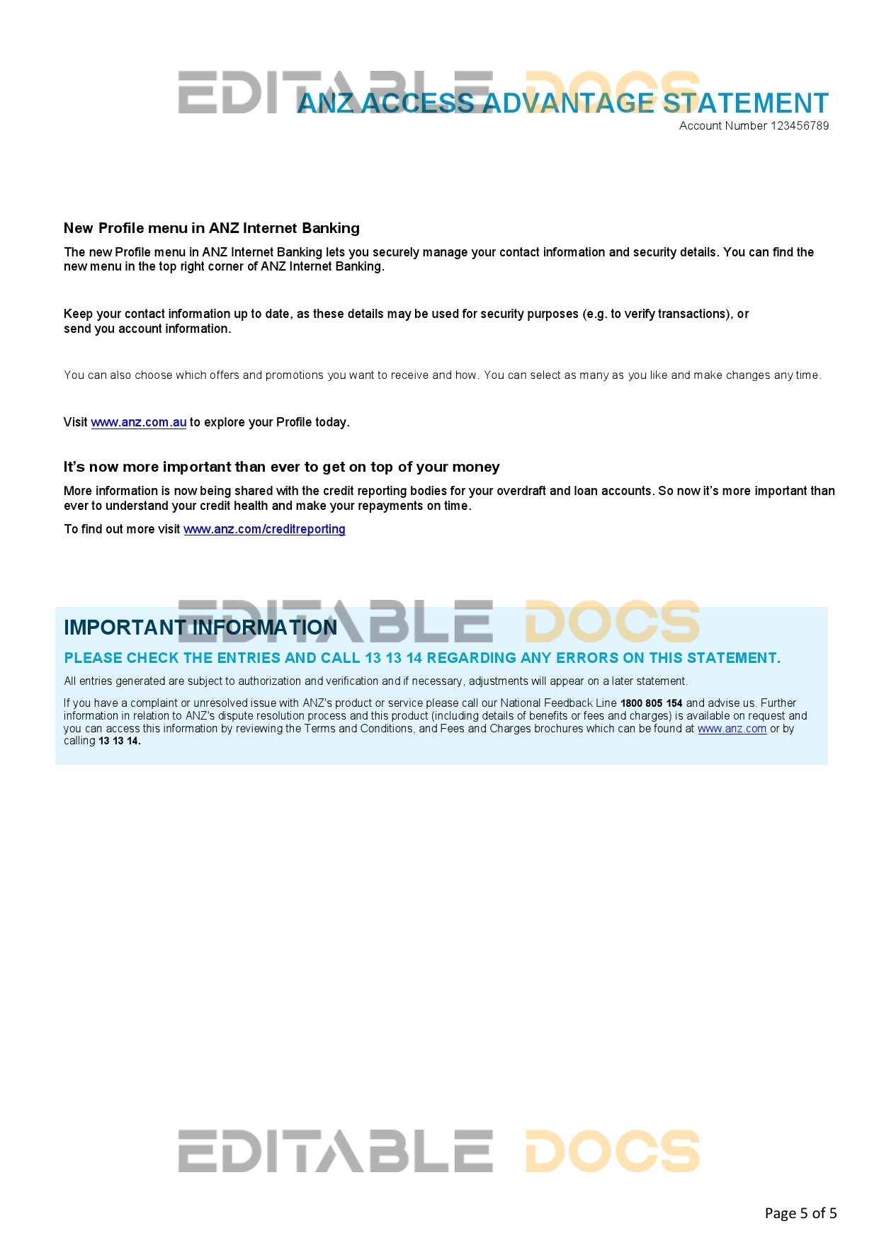 Australia ANZ bank statement Word template . Fully editable Word template. High quality template. Easy to customize, Layer based, fonts included. you can edit this template and put any name, address, license number, Id number, birth date, height, weight, expire date, change photos etc. This Word template is a easy to Editing.To modify this Word template file you will need a Word editing software such as Microsoft Word. Never used low quality template. Your account may be suspended.