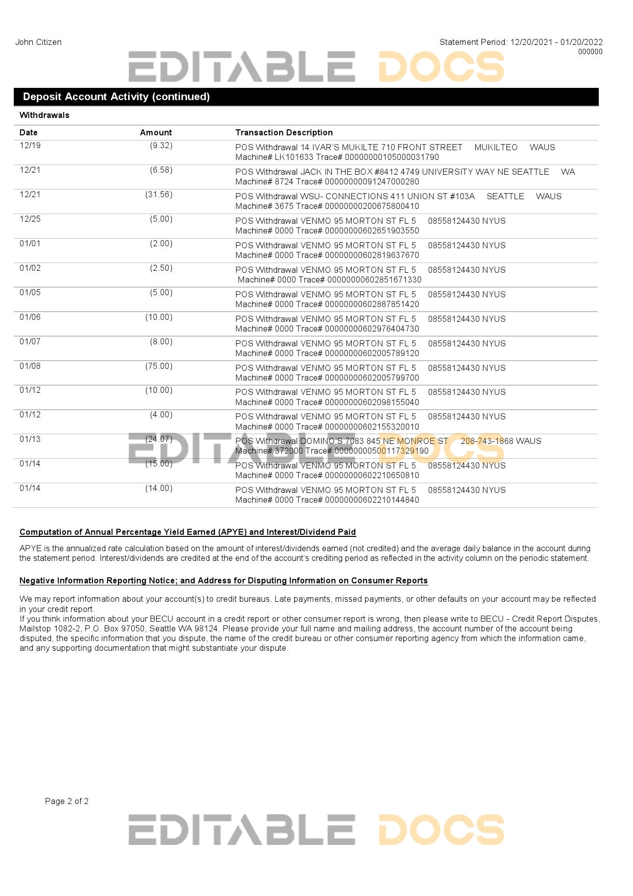 Australia BECU bank statement reliable Word template