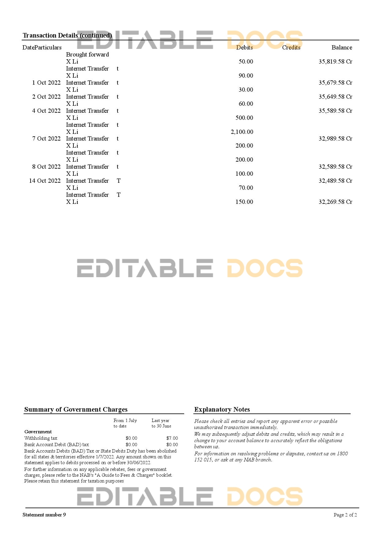 Once you make your purchase, you’ll be able to immediately download the Australia NAB bank statement.doc file and fonts.