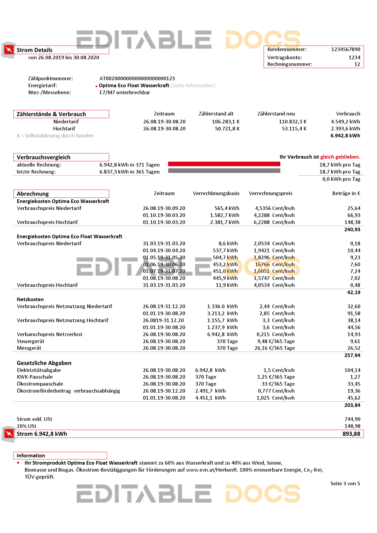 Austria EVN electricity utility bill Word template . Fully editable Word template. High quality template. Easy to customize, Layer based, fonts included. you can edit this template and put any name, address, license number, Id number, birth date, height, weight, expire date etc. This Word template is a easy to Editing.To modify this Word template file you will need a Word editing software such as Microsoft Word. Never used low quality template. Your account may be suspended.
