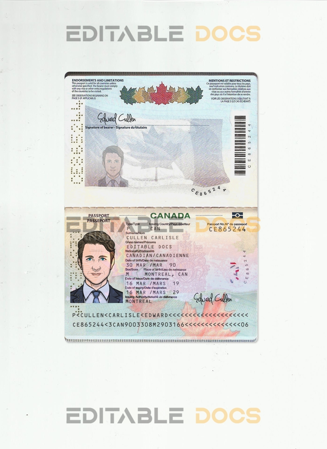 Authentic Customizable Canada PSD Passport Template