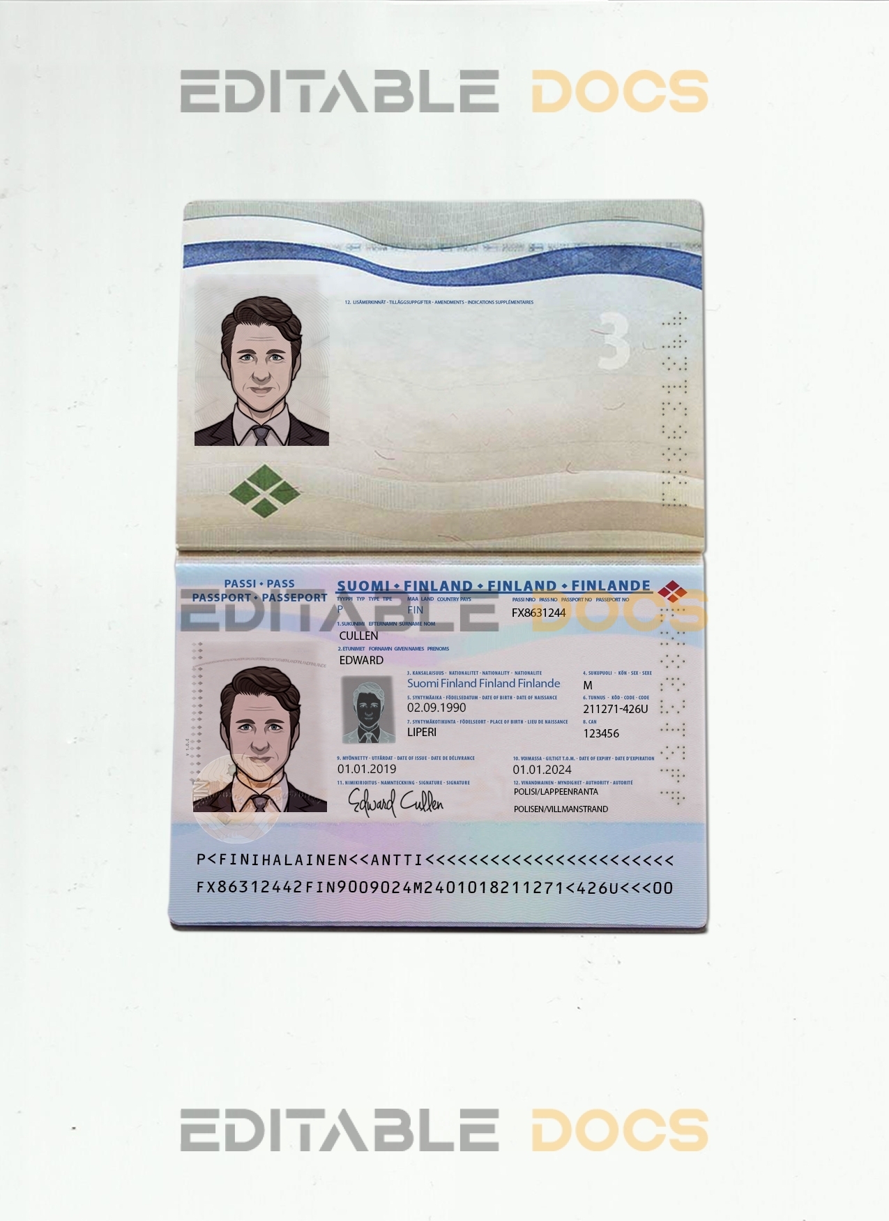 Authentic Customizable Finland PSD Passport Template