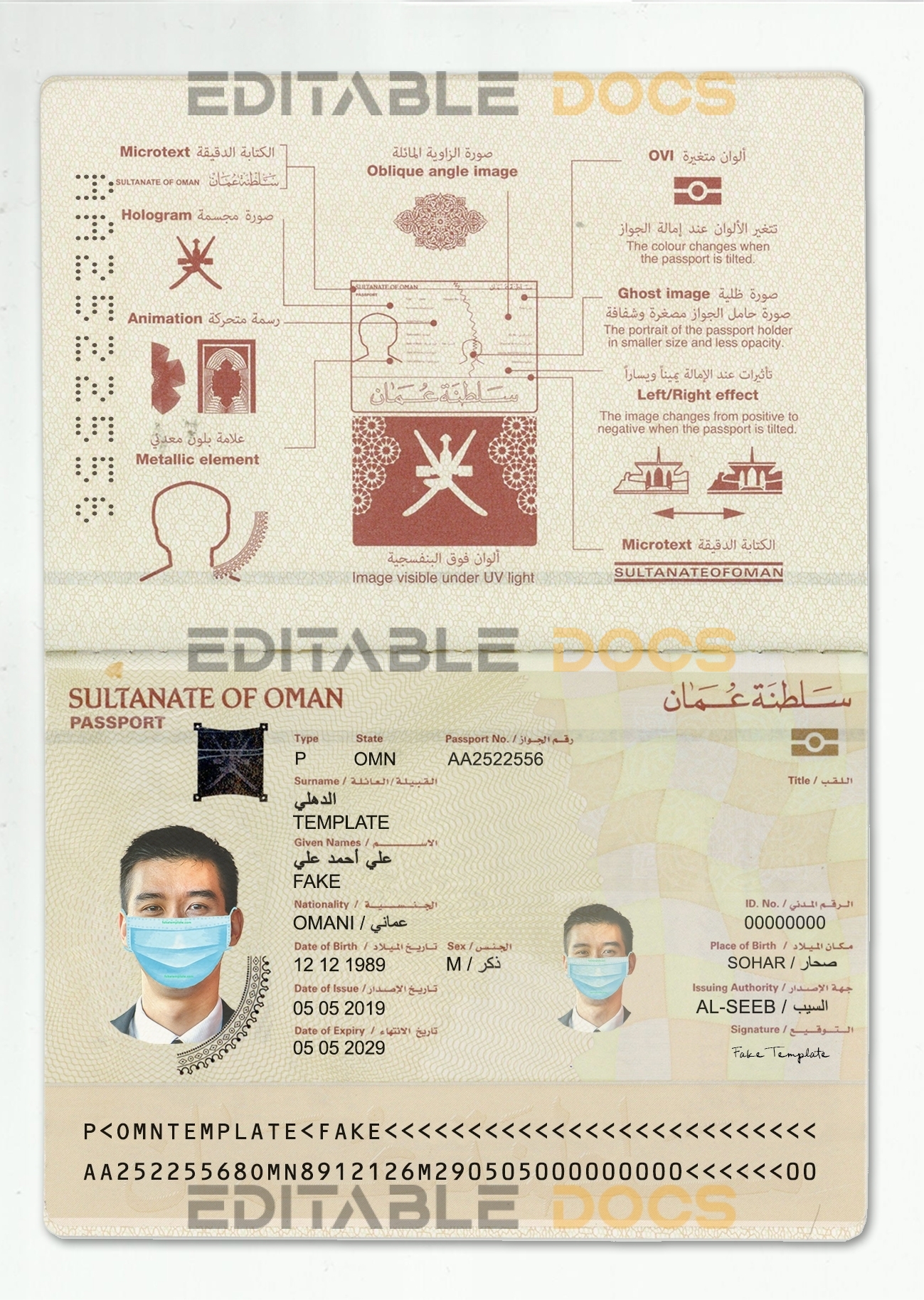 Authentic Customizable Oman PSD Passport Template