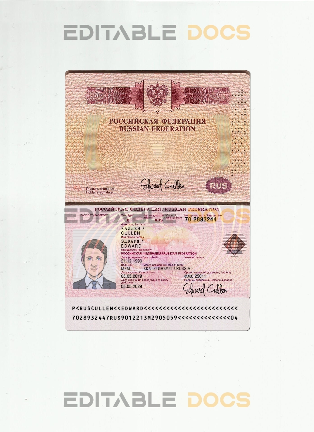 Authentic Customizable Russia Travel PSD Passport Template