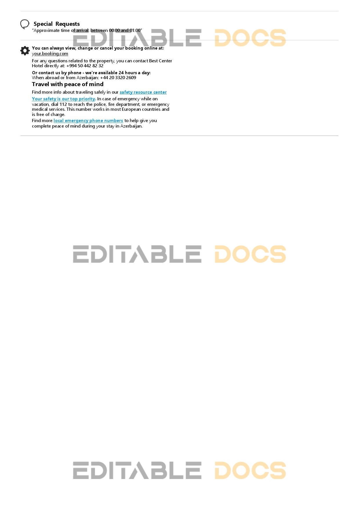 Are you in need of a hotel or Airbnb booking confirmation for your needs? Look no further! Mr. Verify’s editable templates are perfect for providing proof of accommodation and showing expenses, making the fake booking process even more authentic and reliable. Our templates come in both Word and PDF formats, and are available for almost all countries. With our Azerbaijan country name fillable booking form templates, you can easily customize your booking confirmation to fit your specific needs, saving you time and hassle. And if you need any help with editing or construction works, our specialists are ready to assist you at affordable prices. Our support team is also available online to answer any questions you may have.