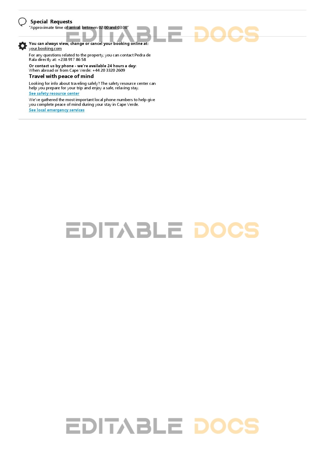 Are you in need of a hotel or Airbnb booking confirmation for your needs? Look no further! Mr. Verify’s editable templates are perfect for providing proof of accommodation and showing expenses, making the fake booking process even more authentic and reliable. Our templates come in both Word and PDF formats, and are available for almost all countries. With our Cabo Verde country name fillable booking form templates, you can easily customize your booking confirmation to fit your specific needs, saving you time and hassle. And if you need any help with editing or construction works, our specialists are ready to assist you at affordable prices. Our support team is also available online to answer any questions you may have.