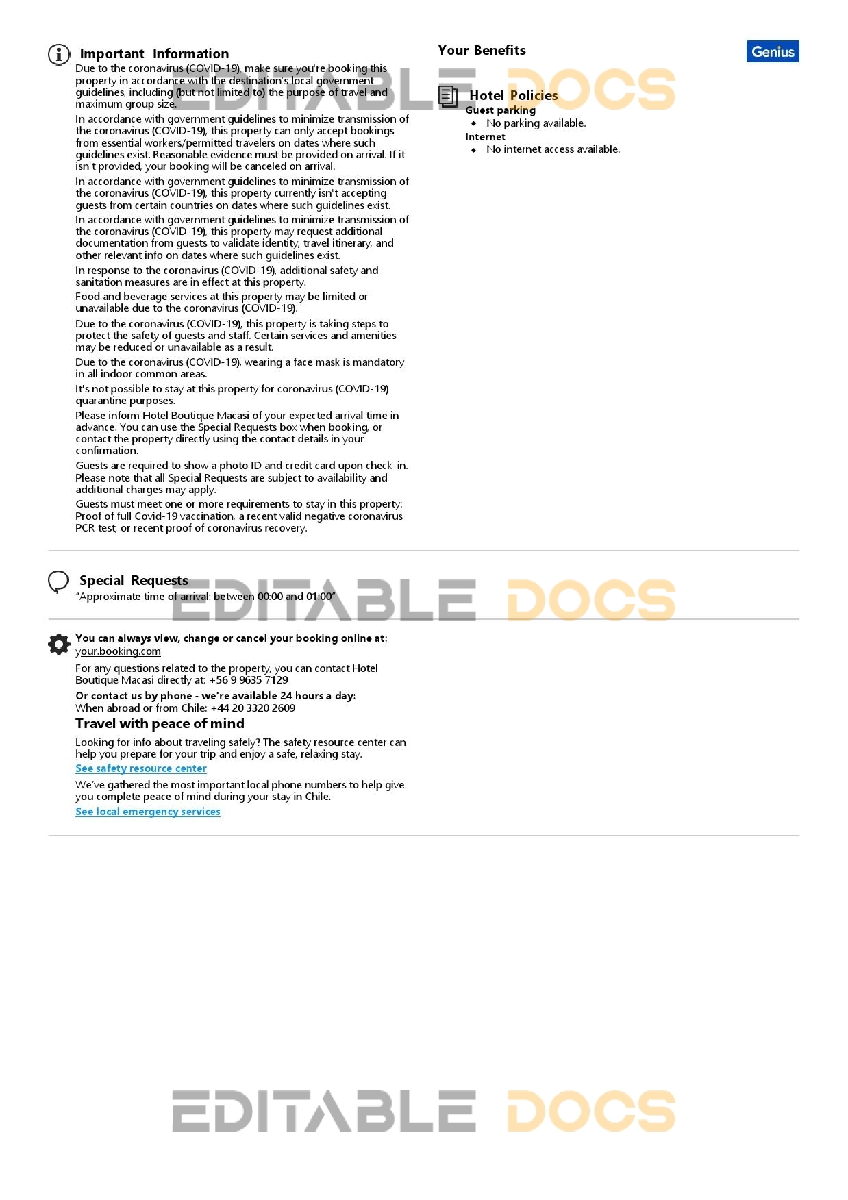 Whether you need a hotel or Airbnb booking confirmation for visa applications, proof of accommodation, or other travel purposes, our editable templates can help. Our templates are designed to make the booking process easier and more organized, allowing you to customize your booking confirmation to fit your specific needs. You can easily change customer information, pickup and destination addresses, contact numbers, arrival and departure dates, payment options, room types, and reservation requests, and more. Our templates are available for instant download in both Word and PDF formats, making it easy to get started right away. Plus, if you need any assistance with editing or construction works, our specialists are here to help you at an affordable price.