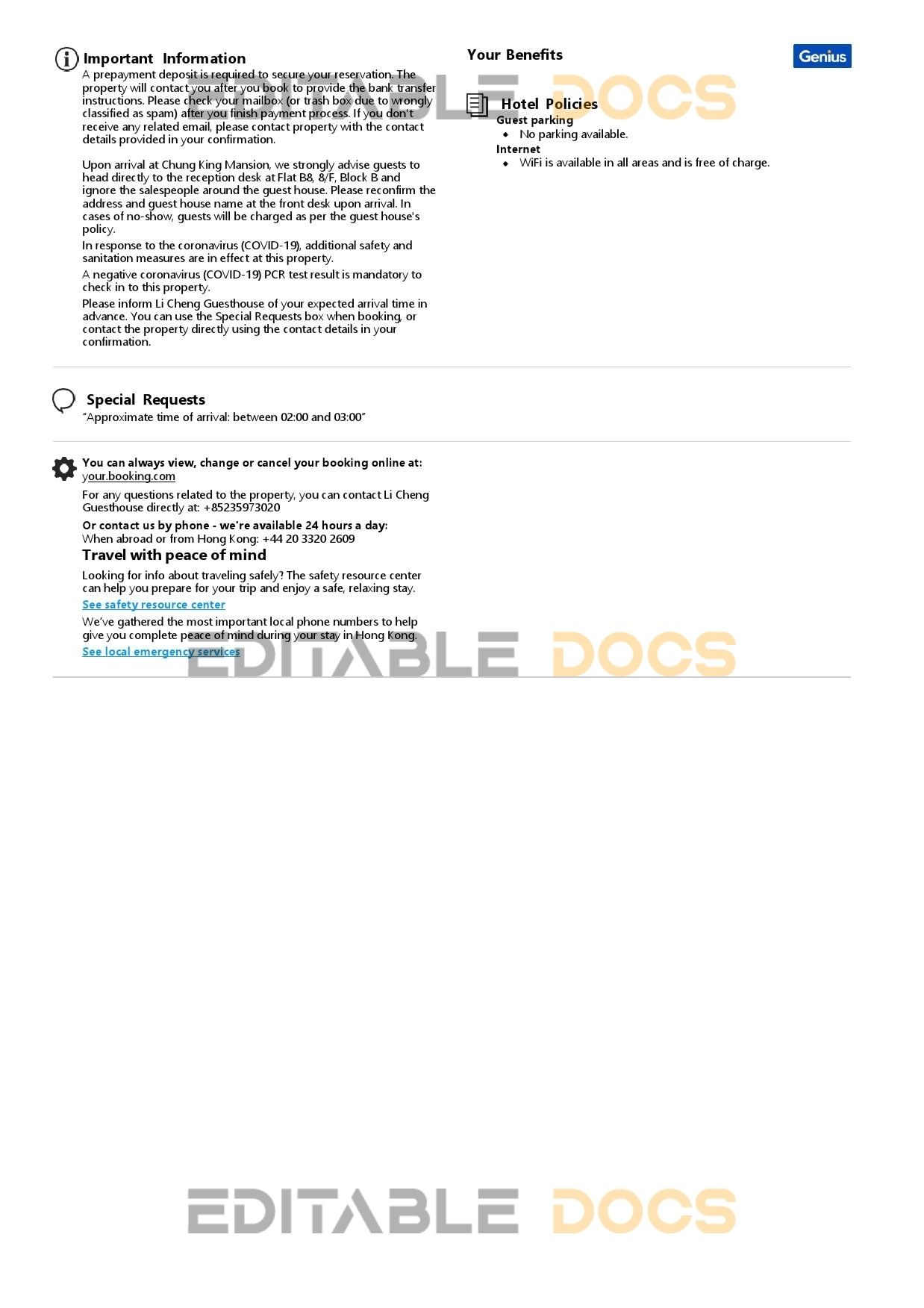 Are you in need of a hotel or Airbnb booking confirmation for your needs? Look no further! Mr. Verify’s editable templates are perfect for providing proof of accommodation and showing expenses, making the fake booking process even more authentic and reliable. Our templates come in both Word and PDF formats, and are available for almost all countries. With our Hong Kong country name fillable booking form templates, you can easily customize your booking confirmation to fit your specific needs, saving you time and hassle. And if you need any help with editing or construction works, our specialists are ready to assist you at affordable prices. Our support team is also available online to answer any questions you may have.