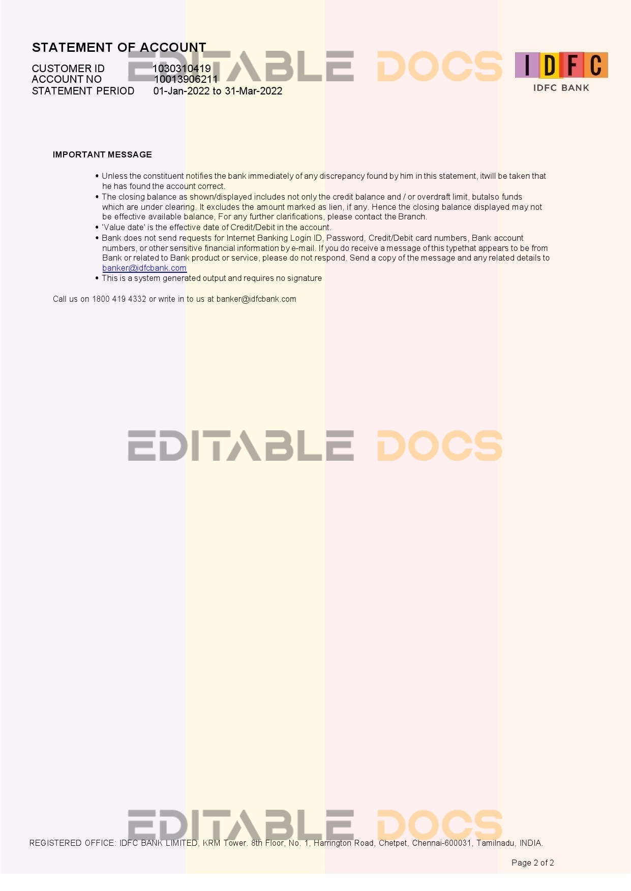 Once you make your purchase, you’ll be able to immediately download the India IDFC bank statement.doc file and fonts.