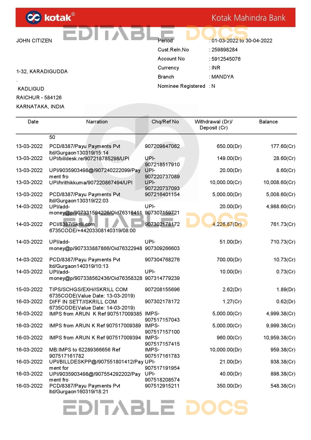 Once you make your purchase, you’ll be able to immediately download the India Kotak Mahindra bank statement.doc file and fonts.