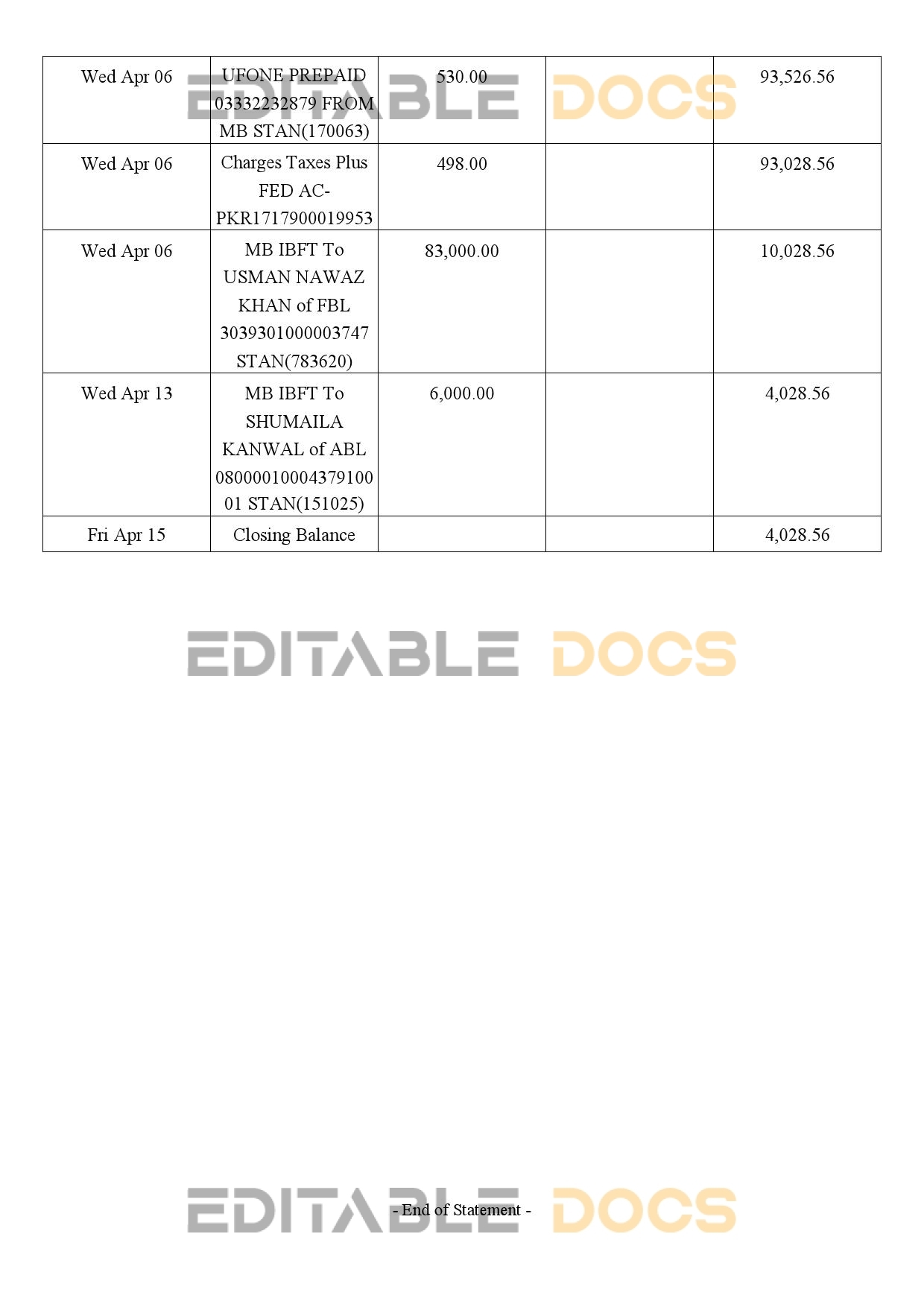 Once you make your purchase, you’ll be able to immediately download the Pakistan Meezan bank statement.doc file and fonts.