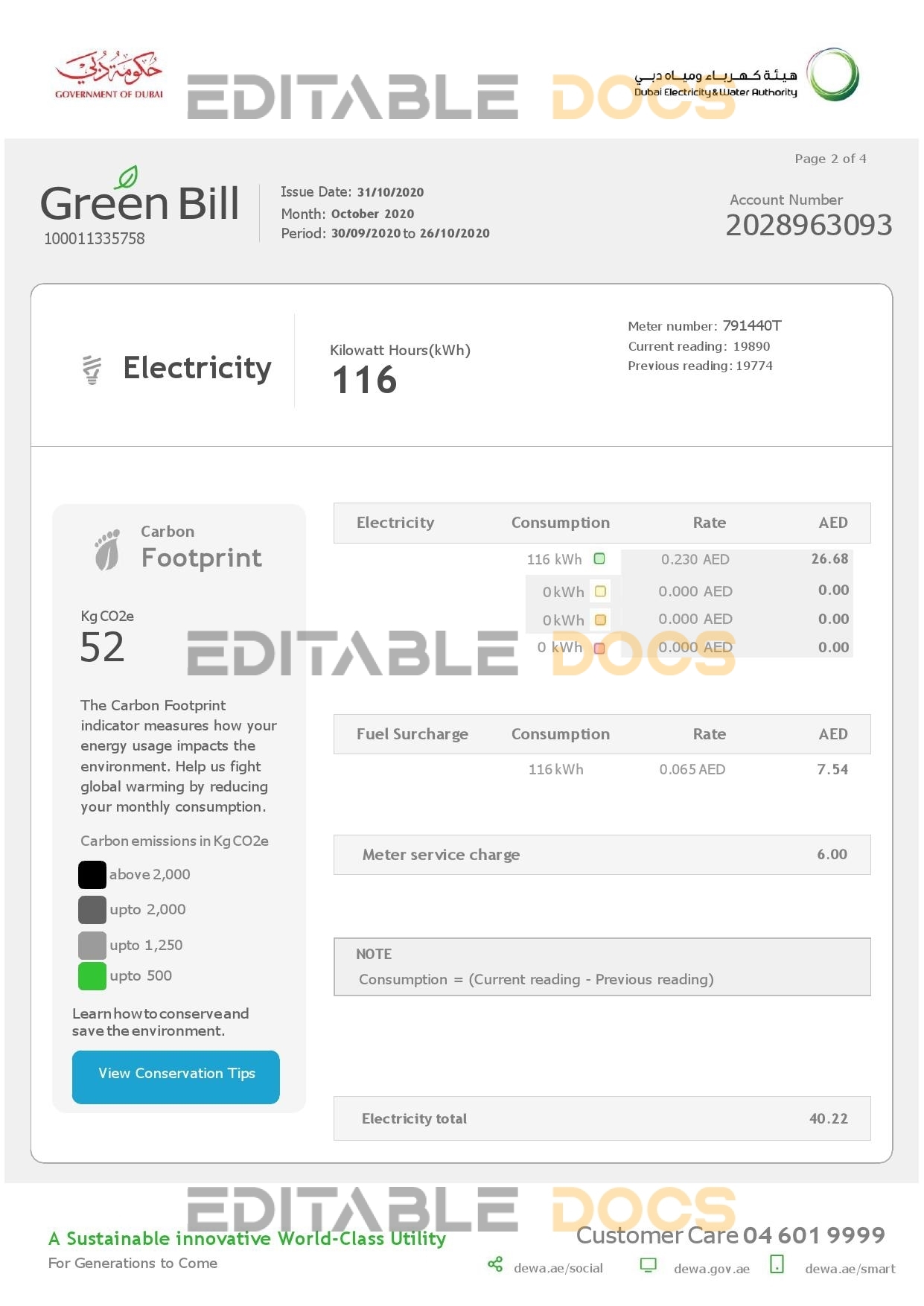 UAE Dubai Electricity & Water Authority utility bill Word template . Fully editable Word template. High quality template. Easy to customize, Layer based, fonts included. you can edit this template and put any name, address, license number, Id number, birth date, height, weight, expire date etc. This Word template is a easy to Editing.To modify this Word template file you will need a Word editing software such as Microsoft Word. Never used low quality template. Your account may be suspended.