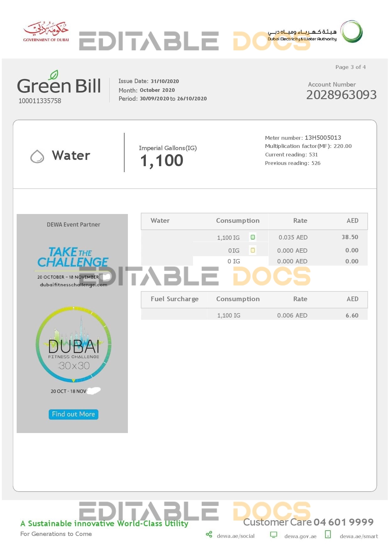 UAE Dubai Electricity & Water Authority utility bill Word and Pdf Template use for :
