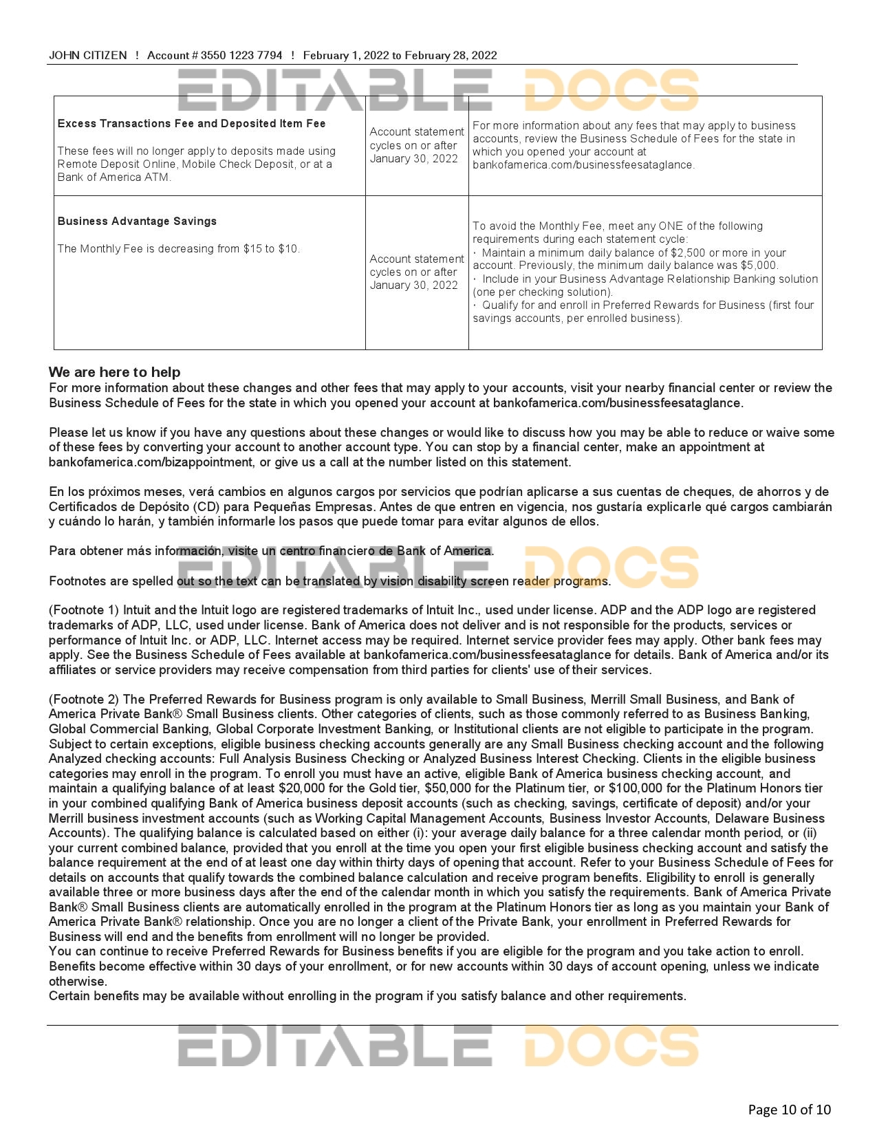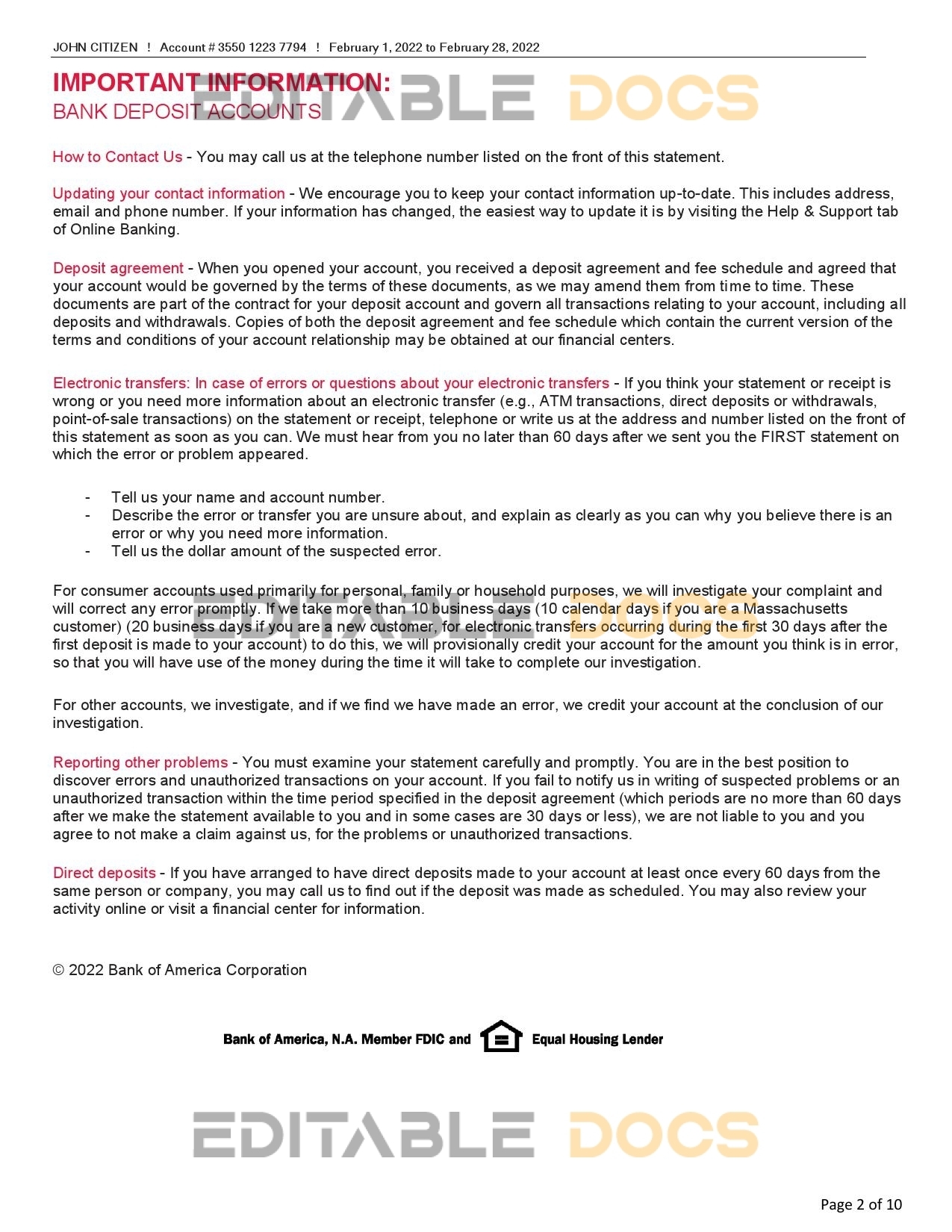 USA Bank of America bank statement Word template . Fully editable Word template. High quality template. Easy to customize, Layer based, fonts included. you can edit this template and put any name, address, license number, Id number, birth date, height, weight, expire date, change photos etc. This Word template is a easy to Editing.To modify this Word template file you will need a Word editing software such as Microsoft Word. Never used low quality template. Your account may be suspended.